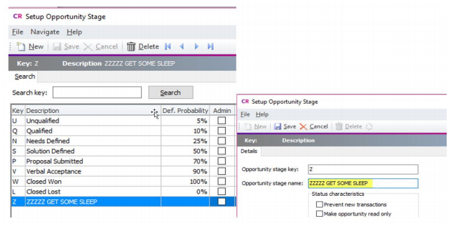 In previous versions of MYOB Exo Business, entering a name in the Opportunity stage name field on the Setup Opportunity Stage screen forced it to be all upper case. This now retains mixed case when you save it.